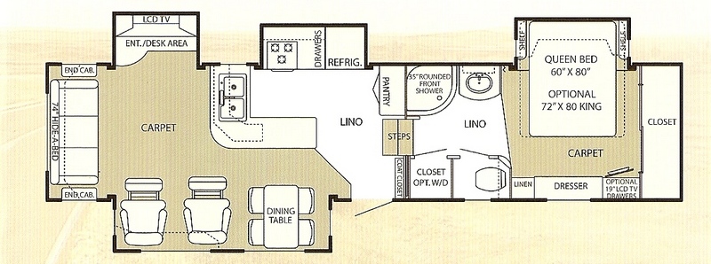 My tow vehicle is a 2008 Dodge Ram 3500, 2WD, Quad Cab, long bed with the Cummins diesel and 6-speed automatic transmission. My RV is a 2008 Hitchhiker Discover America 355 CK by Nu-Wa with four slides.